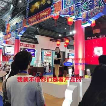 有家中药企业请来的外国美女在展会上十分扎眼,一众人等一直围在左右拍照不舍离去,有的人甚至只能在远处偷偷地拍一张。还有开发小游戏让玩者狂滑手机屏幕的,还有请一支礼仪小姐队伍举着牌子绕场循环的。